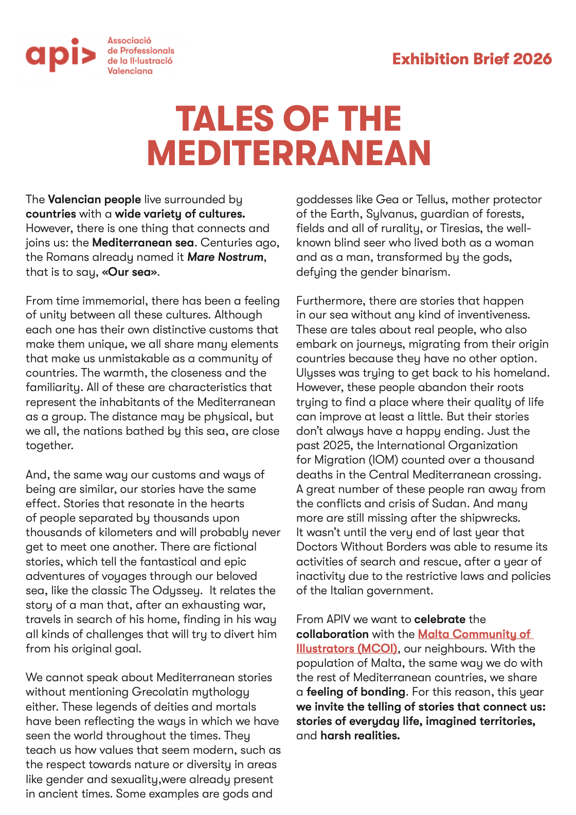 Stories of the Mediterranean Call for Illustrations for a collaborative exhibition with APIV at the 2026 Fira del Llibre de València